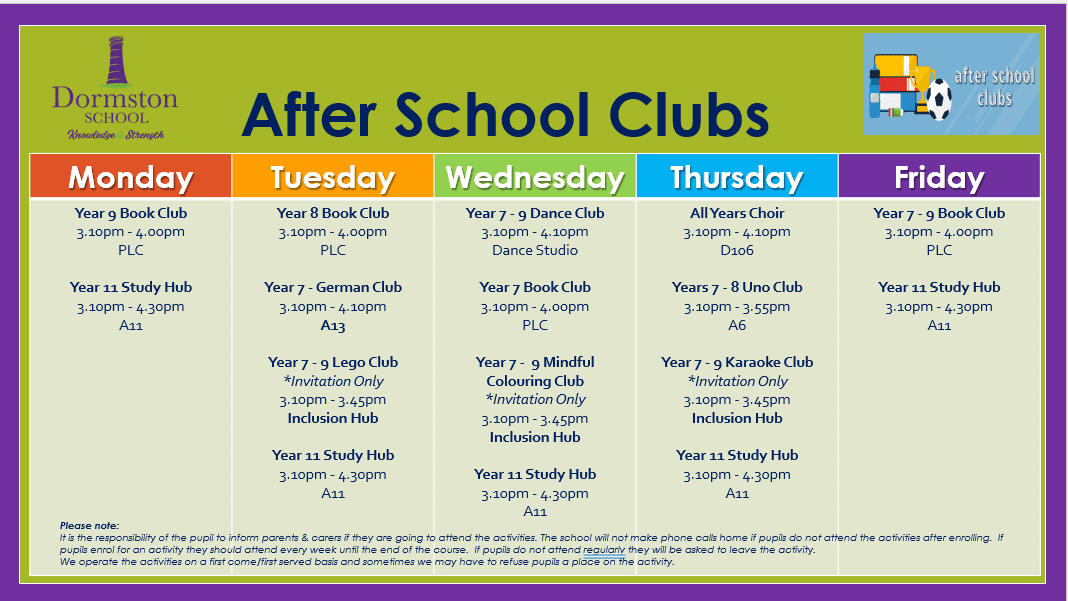 Extra-curricular clubs and trips are a fantastic way for students to build their confidence, develop their social skills, explore interests and learn new talents. At Dormston we encourage each student to get involved and join a range of clubs and currently offer a wide range of school trips. Students are rewarded for their efforts and will receive house points for each club they attend.