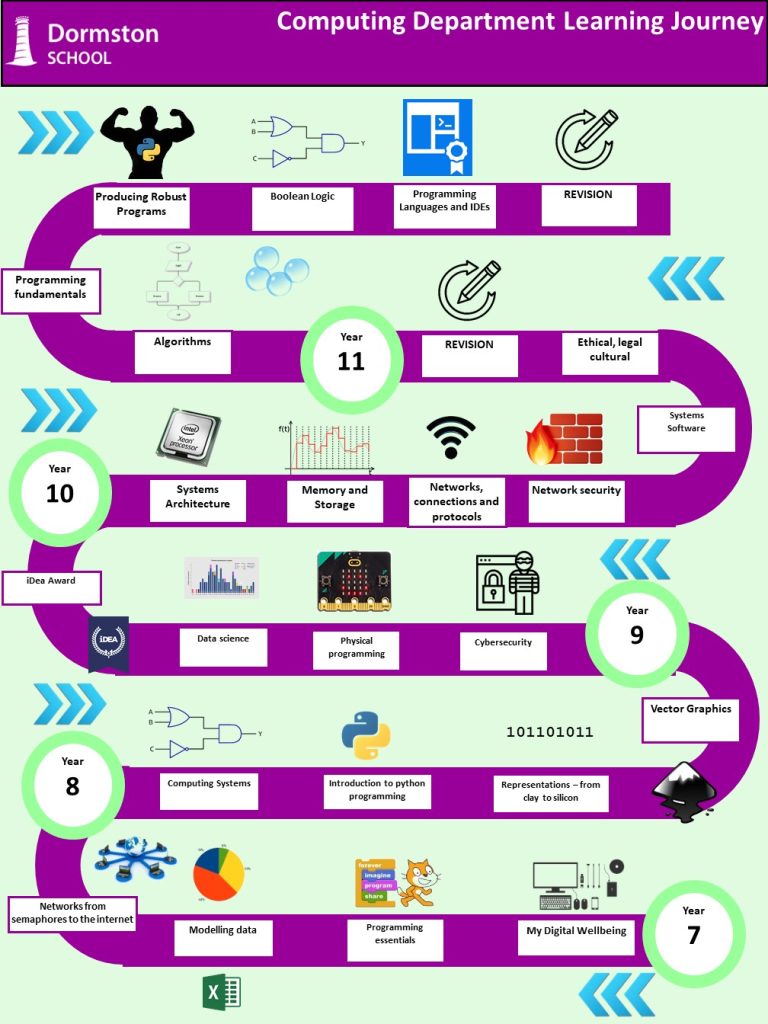 Computing at Dormston aims to provide pupils with the skills and knowledge for an ever-evolving digital future. It is an innovative subject designed to challenge and inspire pupils to think logically, critically, and creatively to solve problems. The curriculum is designed carefully to provide a balance of academic and practical elements to empower pupils to become motivated, independent learners. Computing is not just about ensuring pupils achieve academic success, but also building strong transferrable skills essential to world where digital literacy is crucial.