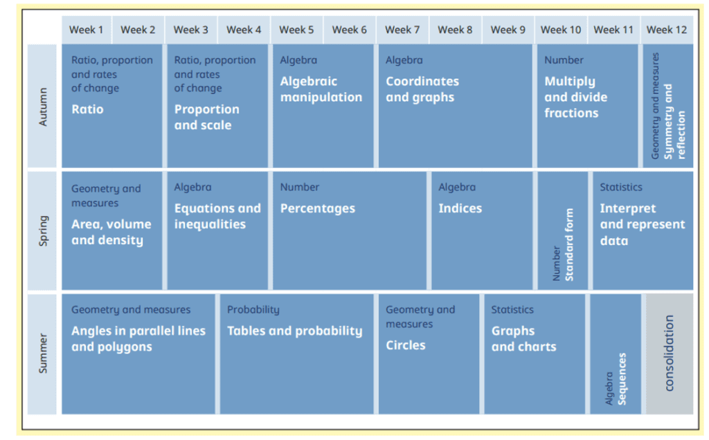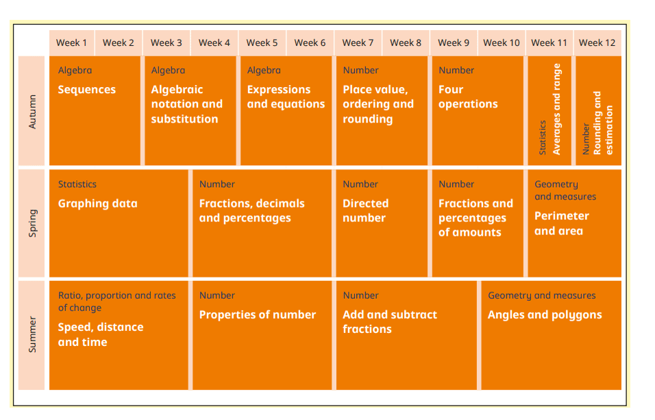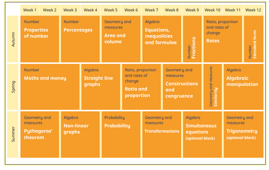Our Key stage 3 curriculum is based on the white rose scheme of learning that many of our feeder primary schools use to aid continuity and confidence. This scheme builds links to other aspects of the maths curriculum whilst incorporating reasoning and problem solving. An overview of topics can be found below.